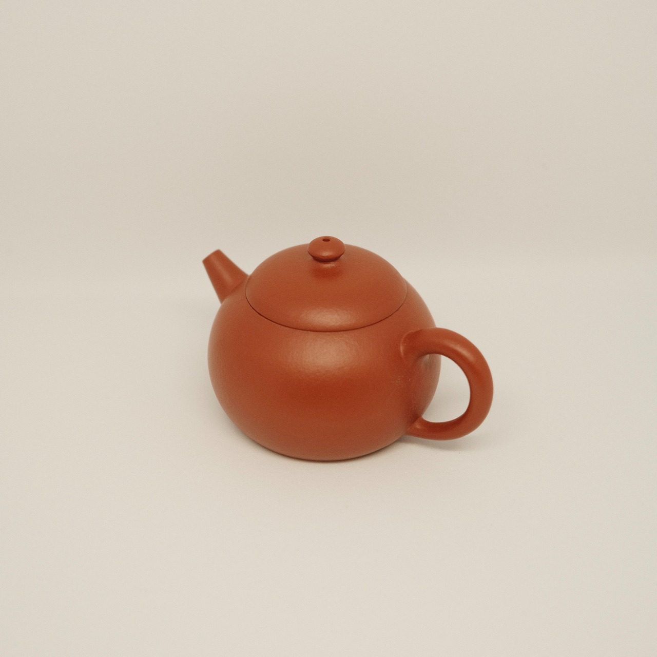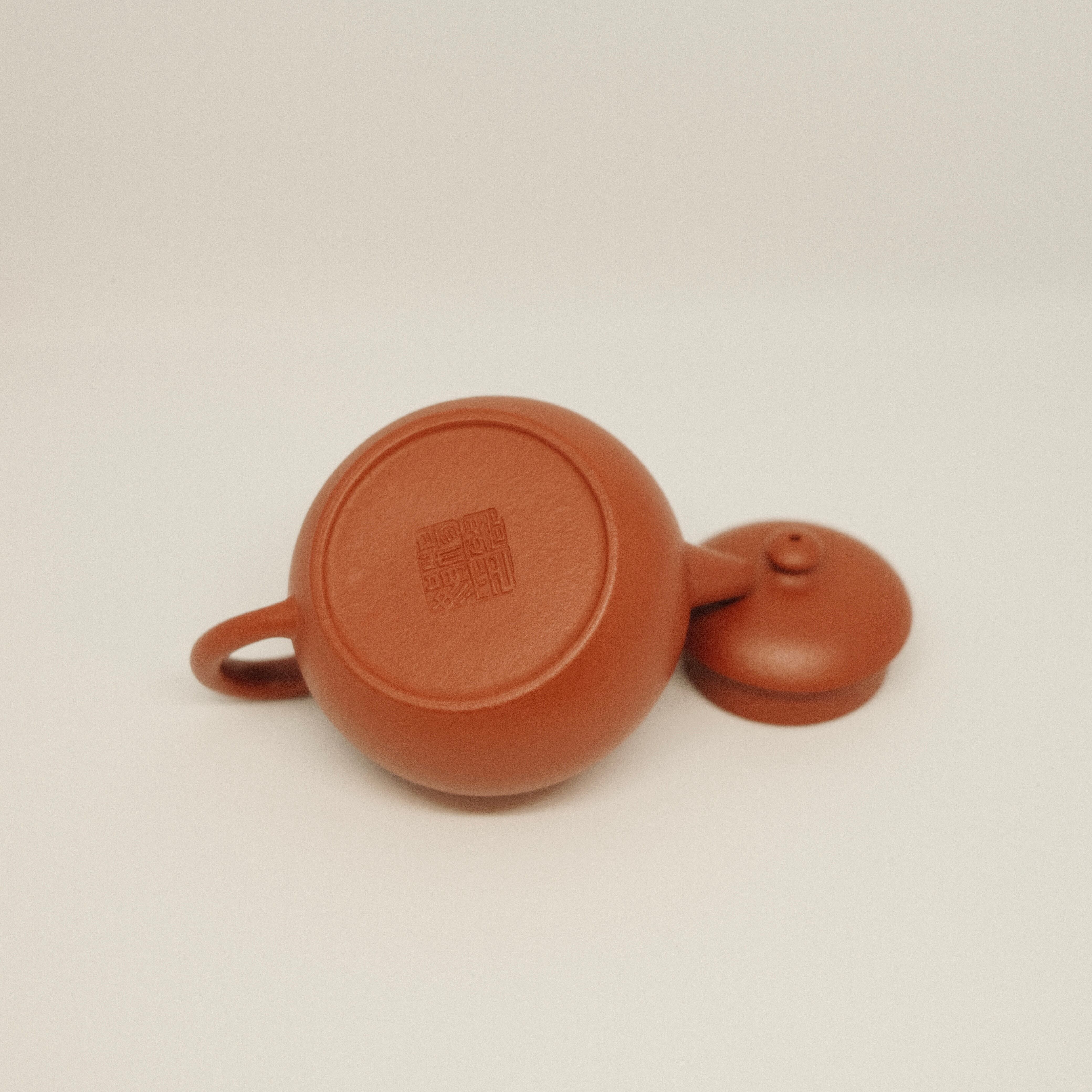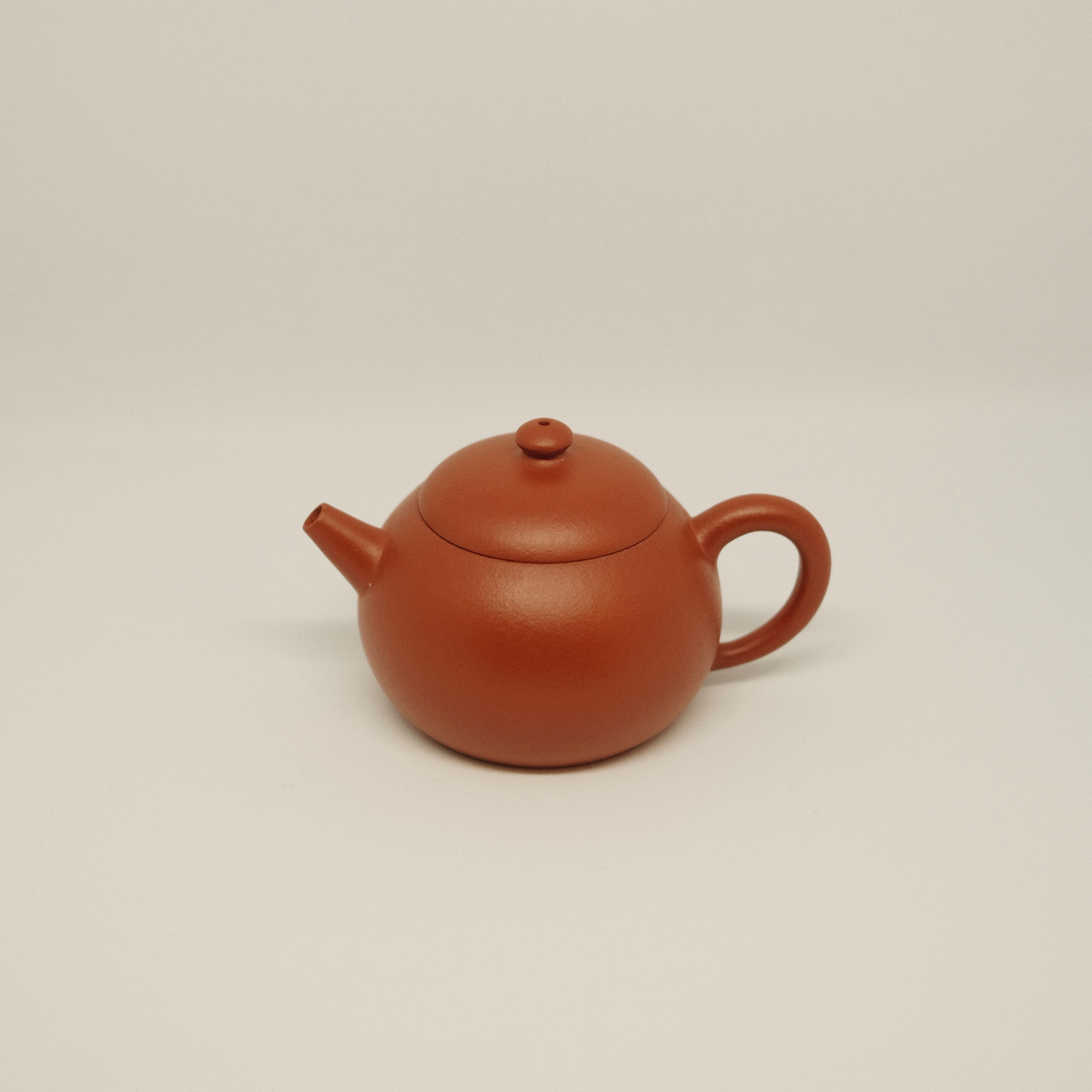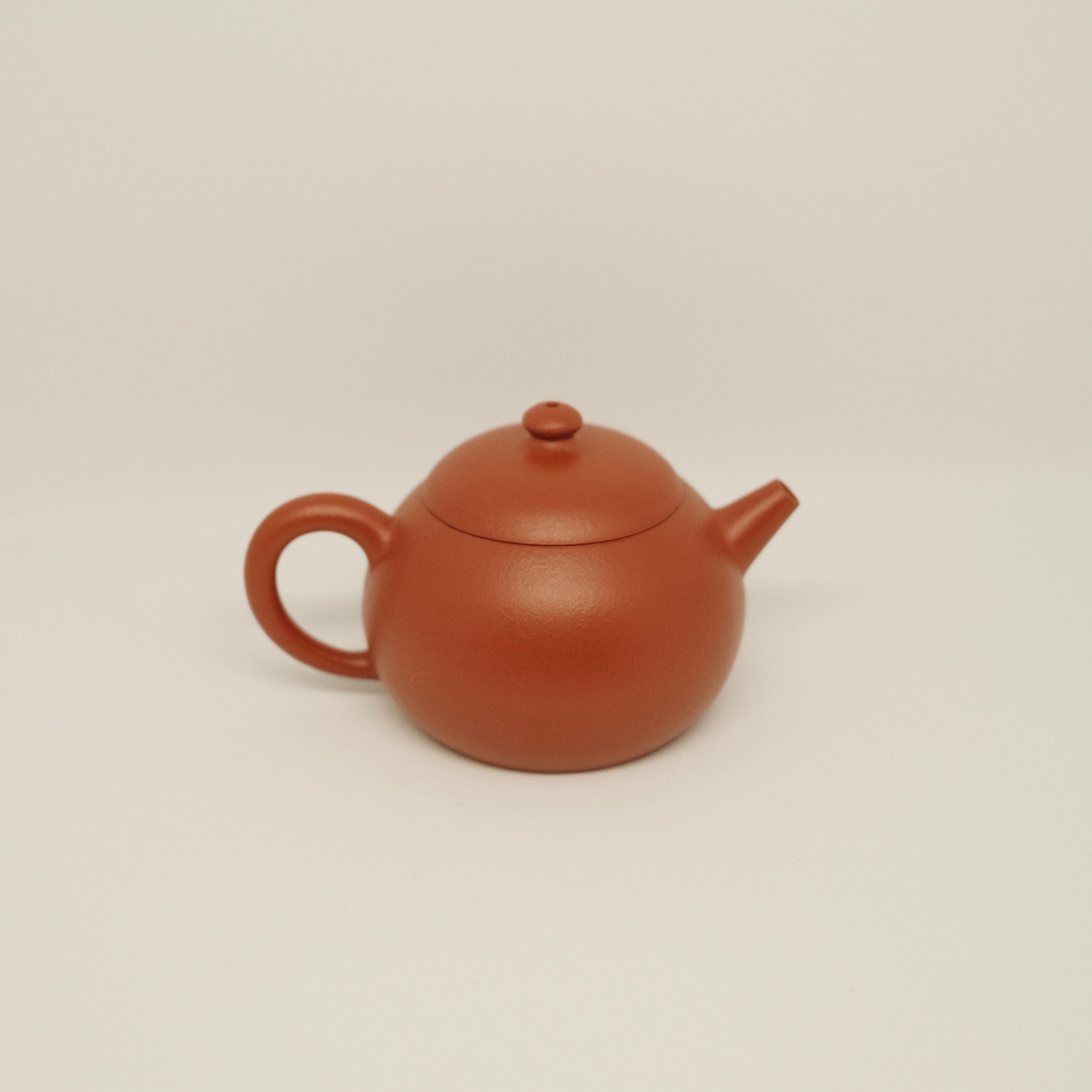 宜興産原鉱半泥を使用した全手工の紫砂壺。丸みのある端正なフォルムと温かみのある質感が魅力です。小ぶりで扱いやすく、容量約70mlのため少量で丁寧にお茶を楽しむ茶席に最適な一品です。